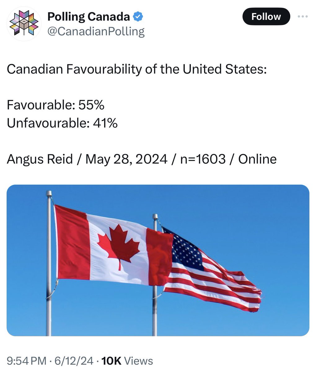 加拿大人对以色列的支持率降到了只有29%,净支持率-26%(其中18-34岁净支持率-49%,35-54岁:净支持率-26%,55岁以上净支持率11%)。对俄国支持率:9%,对中国支持率:13%,对印度支持率:33%,对美国支持率:55%,对法国支持率:72%,对英国支持率:79%。 https://t.co/BhX8DqwuuL