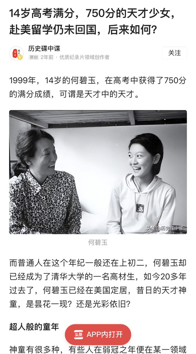 有点常识的就该知道高考不可能有人真考满分,所谓何碧玉在高考中获得了750分满分是流传很广的以讹传讹。所谓高考满分其实是河南高考理科第一名,当时河南高考实行标准分,把第一名定为满分,如此而已,不是卷面满分。当然能考全省理科第一名也很了不起,但全国每年都有30个,没必要胡吹是神迹。 https://t.co/XRpO6icFaC