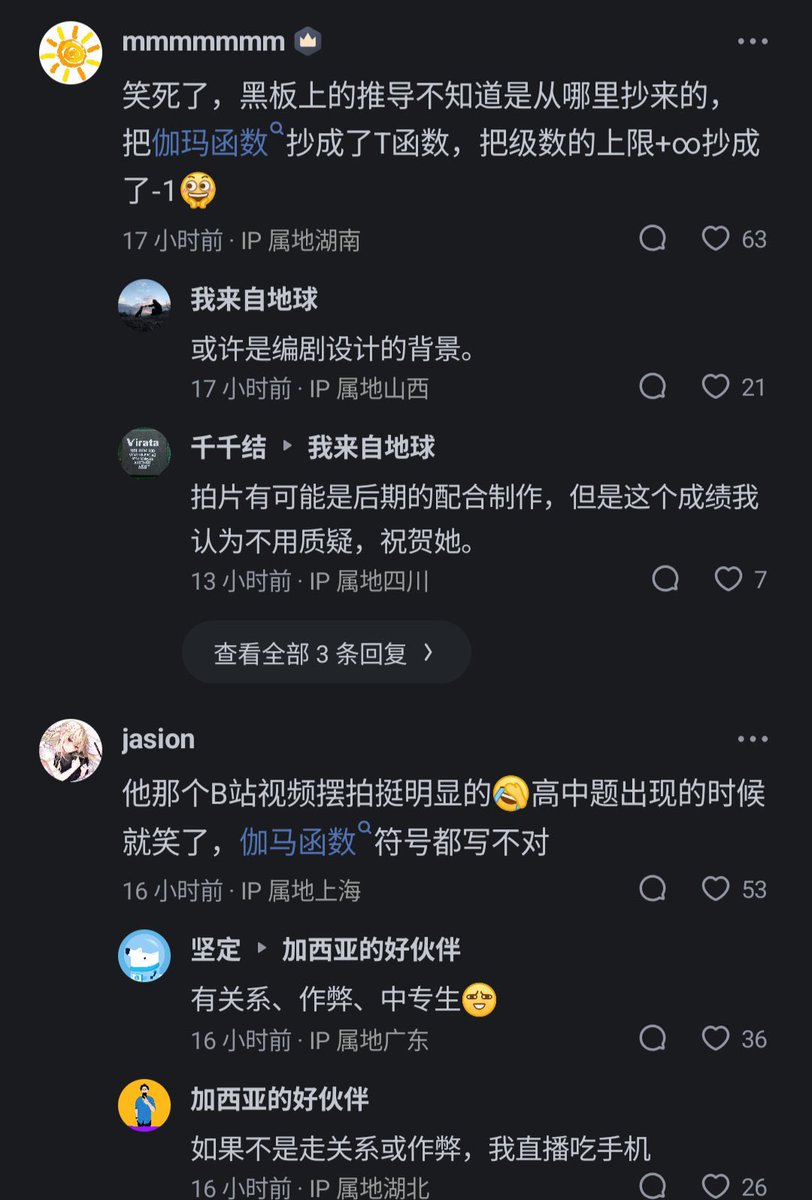中考数学满分150分,姜萍考了83分。不过这个成绩在其中专班里已经是最高的了,可能因此被其数学老师当成数学天才培养了。现在可以肯定这个“数学天才”压根不懂高等数学,只会报书名,抄写公式都能抄错。那么是谁为了推出一个“中专生数学天才”造假呢?是阿里巴巴伪造其比赛成绩,还是其数学老师代考?中国连闭卷考都有枪手,更不要说两天开卷考。