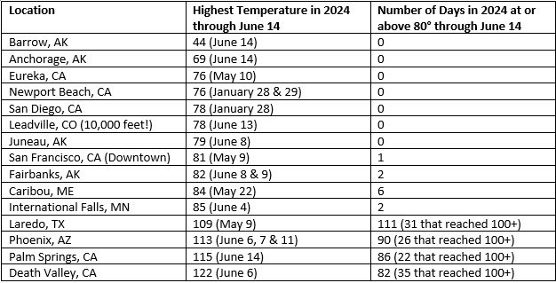 飞机降落时,机长说:“圣地亚哥的天气和平时一样好。”今年已经过半,各地在过去的半年曾经达到的最高气温(摄氏度):阿拉斯加巴罗:7,阿拉斯加安克雷奇:20.5,加州圣地亚哥:25.5,加州旧金山:27,阿拉斯加费尔班克斯:28,得州拉雷多:43,亚利桑那凤凰城:45,加州棕榈泉:46,加州死谷:50。 https://t.co/nqYzljud6V