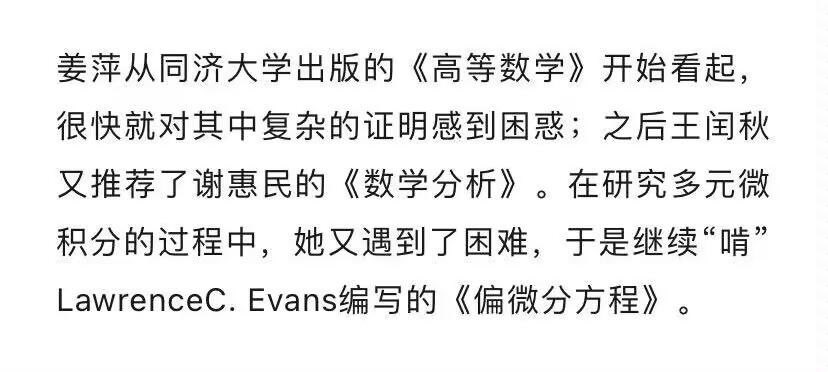 姜萍连最基础的《高等数学》都看不懂,却去看更难的《数学分析》,还不懂,又去啃更难的《偏微分方程》。这是什么学习逻辑?这么拙劣的谎言,却让全中国举国疯癫,以为真出了一个数学天才,也是新时代特色。 https://t.co/1fIgBMjnCT