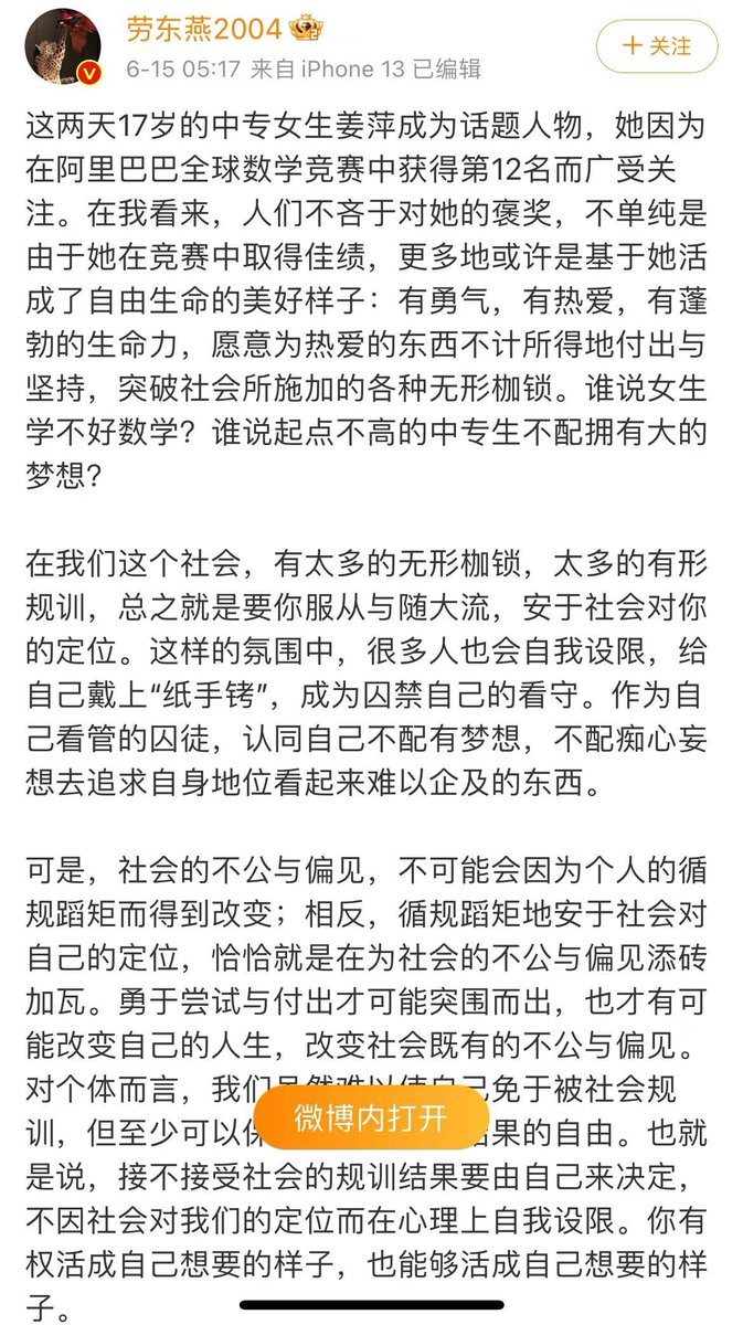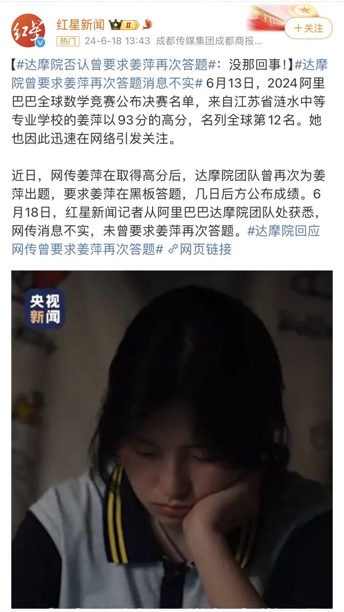 这个爆料未必可信,没法查。我想知道的是姜萍在接受采访时是不是真的说过她只做了四道题,这个可以查。 https://t.co/b3OmodBkxZ
