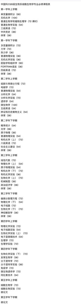 这是我当年的课程表,全世界生物系本科应该不会有第二个大学是这么开课的,后来中科大改四年制也没再这么学了。另外,有人提到有没有学复变函数,在学数理方程时也学了复变函数,但主要是学偏微分方程。 https://t.co/k9lN6PBxwV