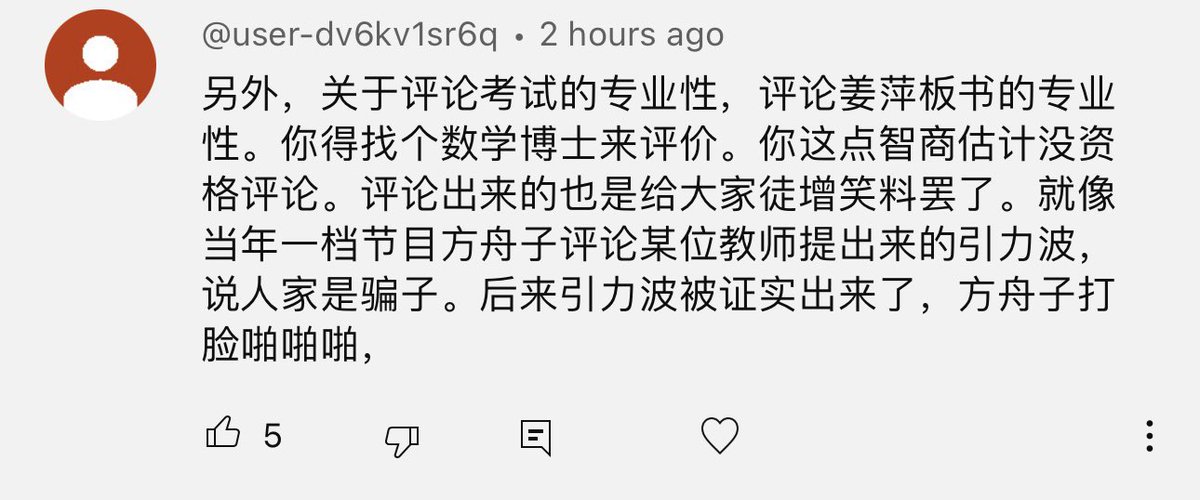 相信姜萍是“中专数学天才”的,和相信“诺贝尔哥”发现“引力波”的,果然是同一拨人。上次骂我让中国丢了一个诺贝尔物理学奖,这次得骂我让中国丢了一个菲尔兹数学奖。 https://t.co/OlyBAhNJ32