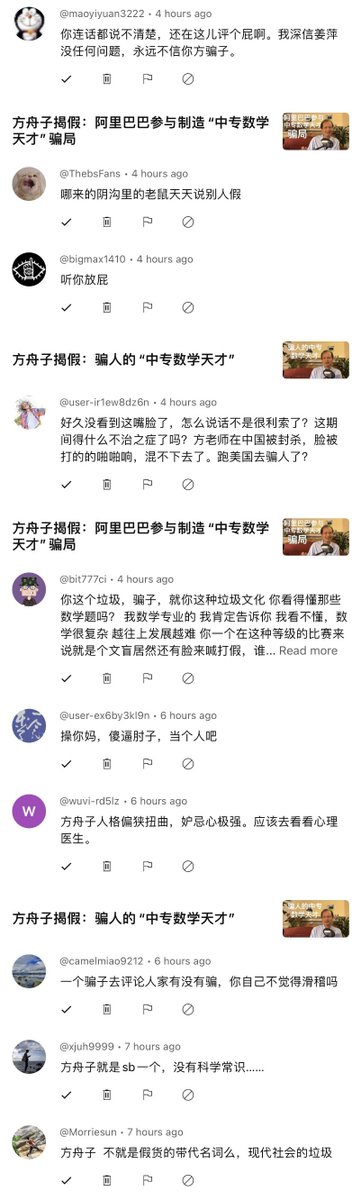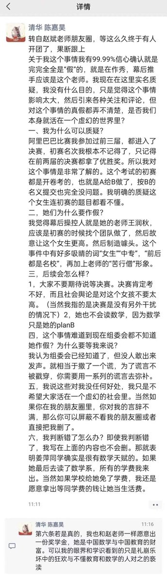 央视、人民日报这些官媒都是阿里巴巴“中专数学天才”骗局的推手,现在一看骗局败露,不许人们“消费他人隐私”了,还要“把答案交给时间”。只要智商满80,答案就在眼前,哪还需要时间?丘成桐说中国数学研究不如四十年代的美国,我看中国社会对数学的态度连两百年前的美国都不如,对最纯粹的数学都敢造假。 https://t.co/1mBMFQZ6Nl