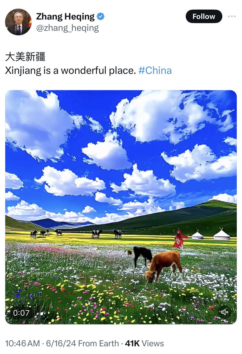 这个战狼外交官是个高级黑,新疆美景需要用人工智能伪造。 https://t.co/qFAoChOtWN