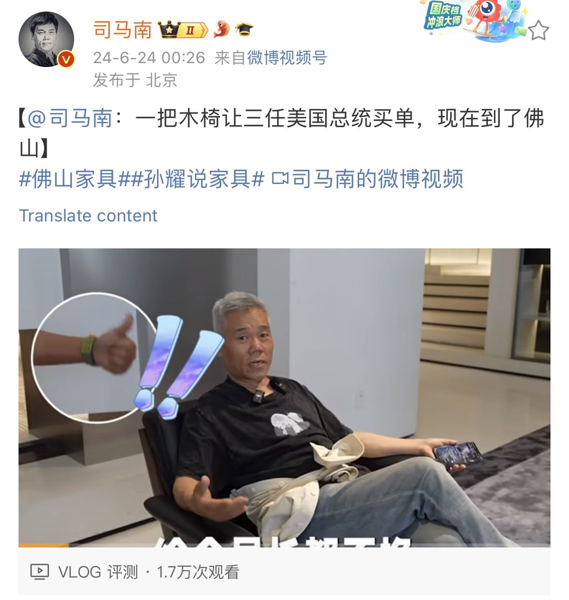 我还以为三任美国总统都在佛山买木椅,原来是说美国总统喜欢的马洛夫摇椅现在佛山也会造,偷人家的设计偷得这么骄傲。(马洛夫是美国著名家具设计师) https://t.co/1rLYORtGZG