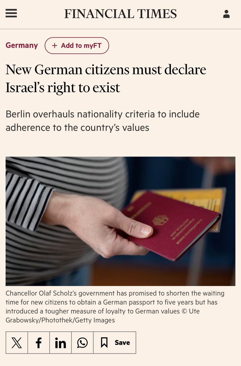 德国成为以色列附属国,要加入德国国籍必须效忠以色列。 https://t.co/IC6uhkUsxY