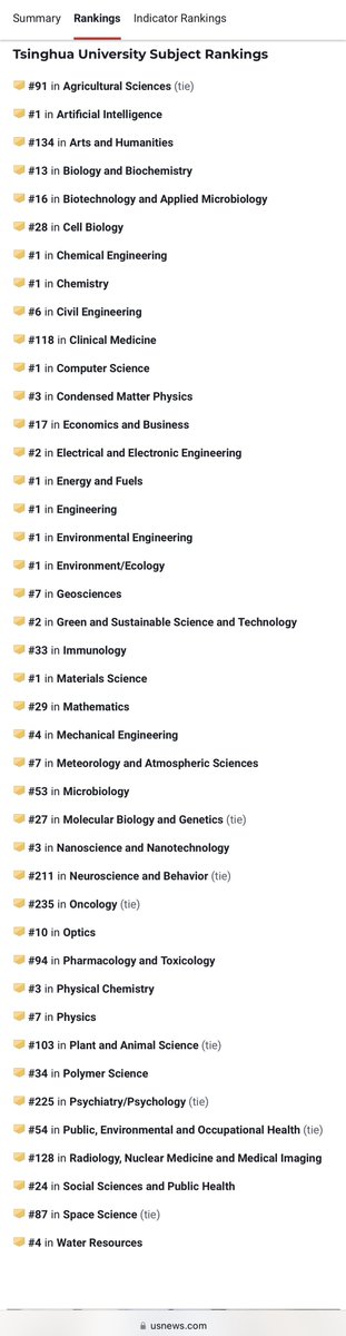 世界超一流大学清华大学的人工智能、计算机科学、工程学、化学、化工、材料科学、环境科学、环境工程都是世界第一,厉害吧。 https://t.co/4tIQ3Wsf3T