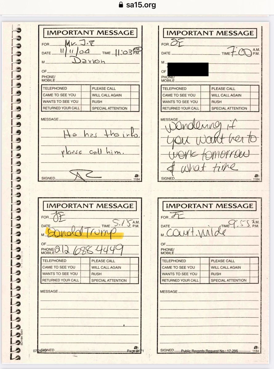 新公布的爱泼斯坦2004年11月电话留言记录,川普两次打电话给他,都是下午5点多的时候。 https://t.co/W3pHictXD5