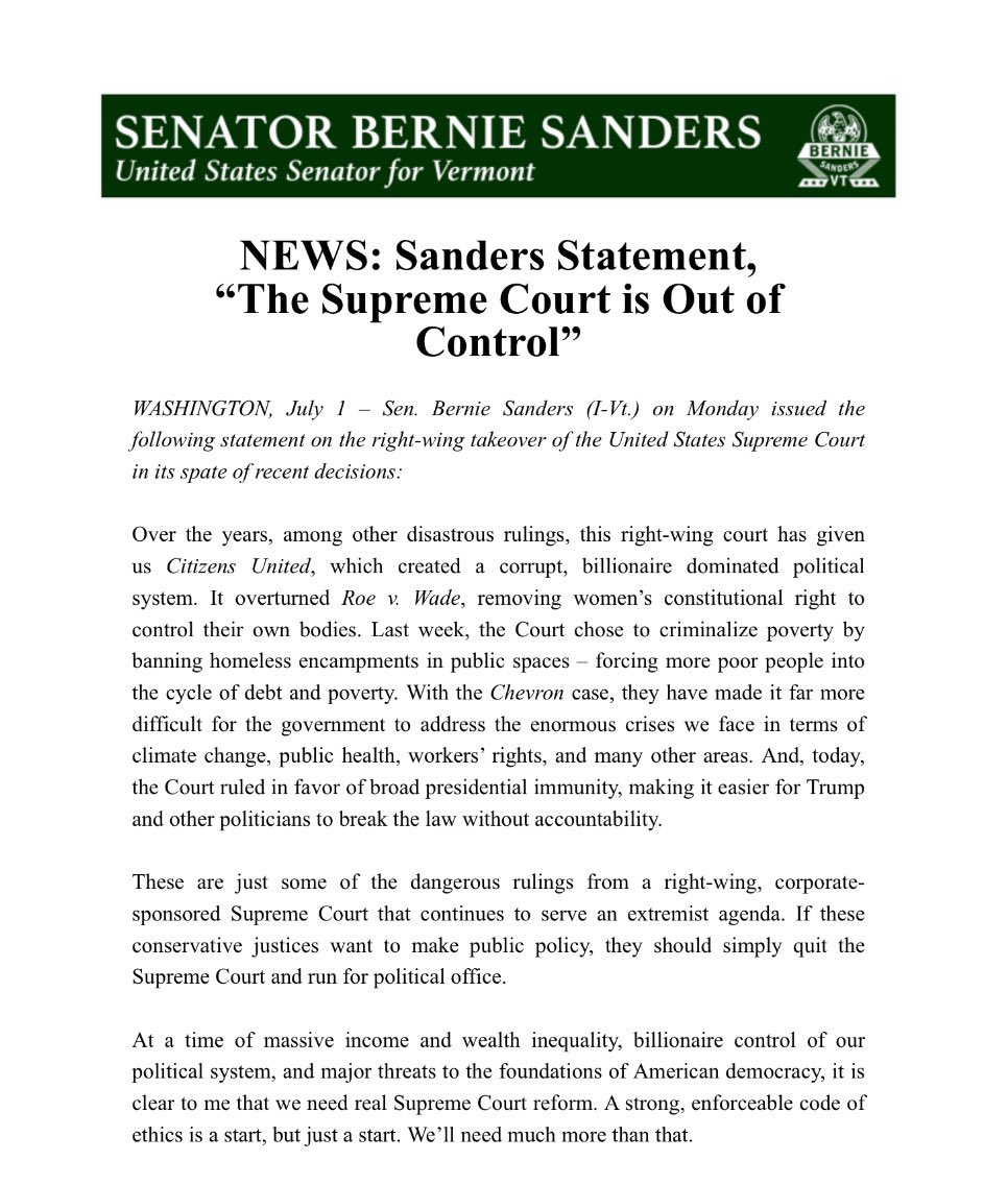 我是预言帝之美国最高法院颠覆民主制。桑德斯参议员建议最高法院保守派大法官辞职去竞选公职实现其政治目标。这些人本来就是披着法袍的政治活动家。今天美国最高法院这种局面,是联邦党人学会40年来精心策划的结果,尤其以该学会领导人Leonard Leo功劳最大。 https://t.co/SsfdaPlxwa