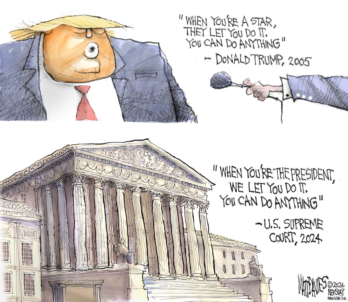 最高法院保守派大法官都是一帮骗子,听证的时候都会说没有人,包括总统,能够凌驾于法律之上。现在说总统在行使职权时凌驾于法律之上。 https://t.co/rKYWmptCPU