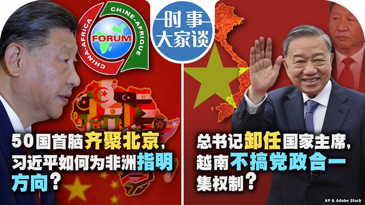 中非峰会登场,50多位非洲国家元首和政府首脑齐聚北京。中国在非洲的投资和影响日益具有与美国角力和阵营对抗的色彩,而伴随中国经济下行,中国的投资承诺以及中非合作前景是否受到影响?越共新任总书记苏林卸任国家主席,越南将回归总书记、国家主席、政府总理、国会主席由不同人担任的“四柱”架构。越共为何不走中共党政合一的极权道路?越南恢复分权和集体领导对习近平和中共有何影响和冲击?请看9/4时事大家谈并留言。
