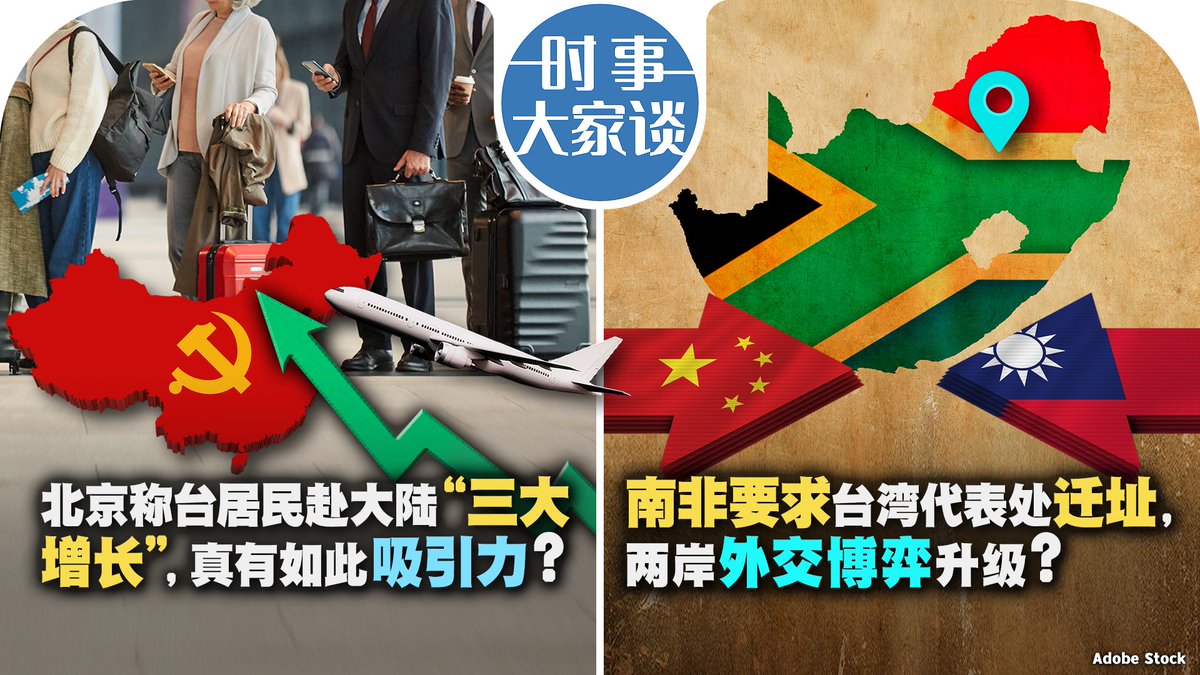 北京称对台湾居民台胞证签发量,入境和定居人数大幅增长。中国是否真的对台湾居民有如此之大的吸引力?南非要求台湾代表处搬出其首都,台湾再次拒绝。两岸外交博弈是否升级?还是中国展现在非洲的影响力?请看10月24号【时事大家谈】并留言。 https://t.co/Gv7oDAYvdK