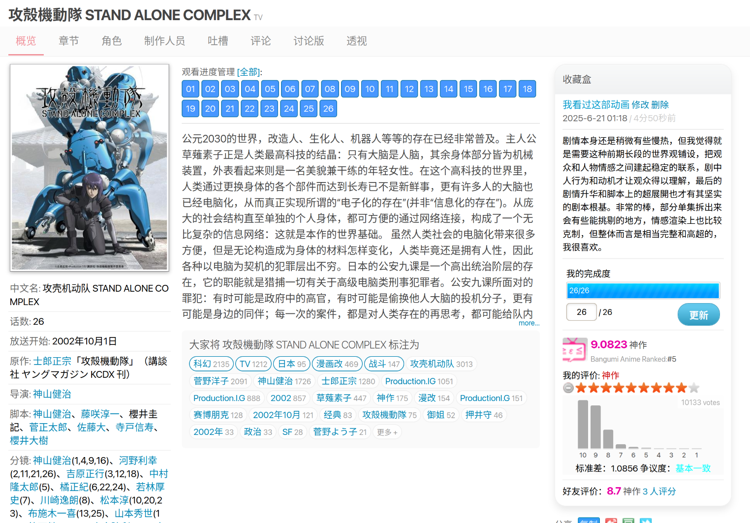 好看好看!神山版本的攻壳我也很喜欢!把一部作品用两个方向讲出两部杰出作品,原作太幸福了。