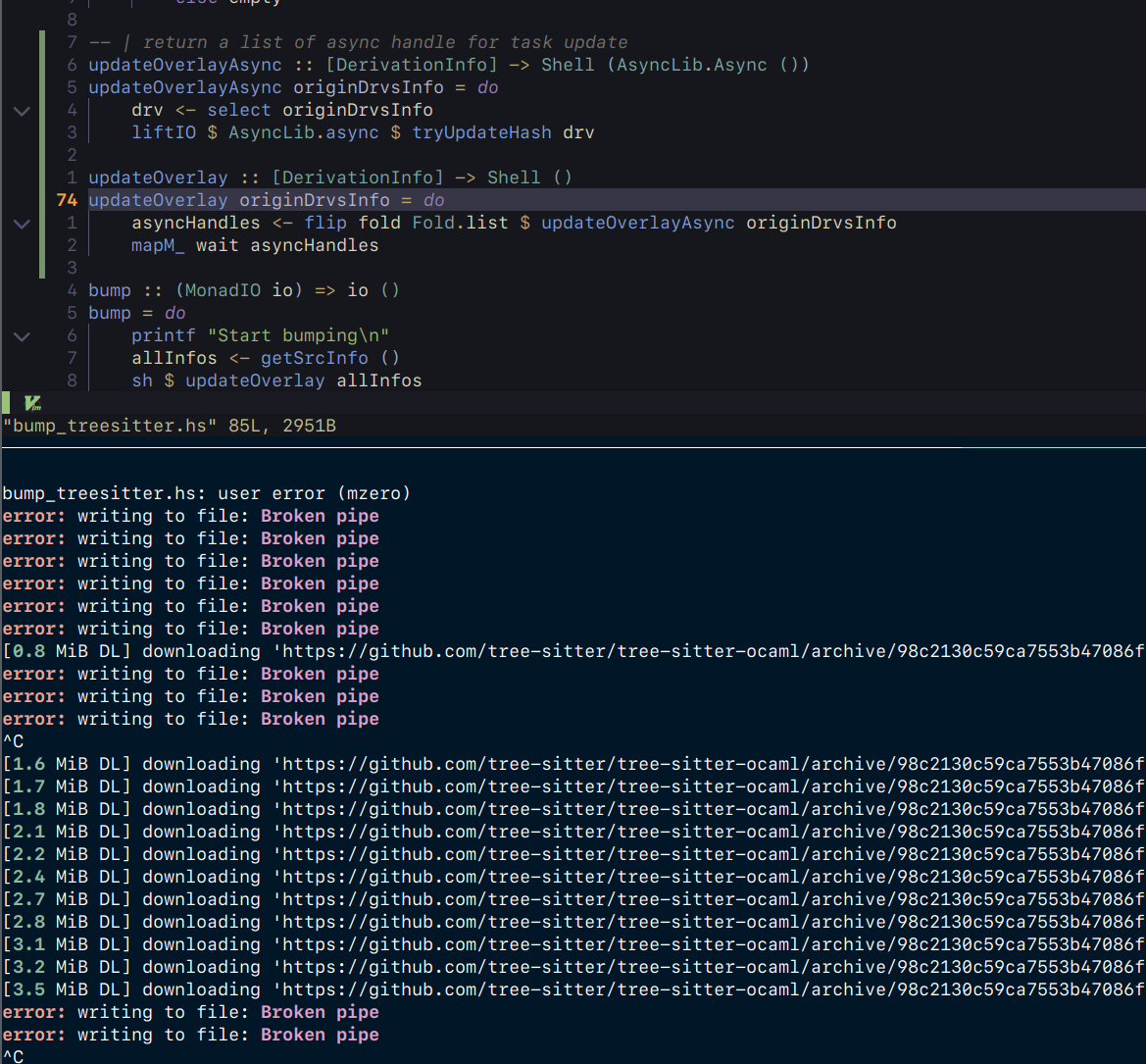 草,试着让它 async 起来,结果 nix 直接在 stdout race 起来了。