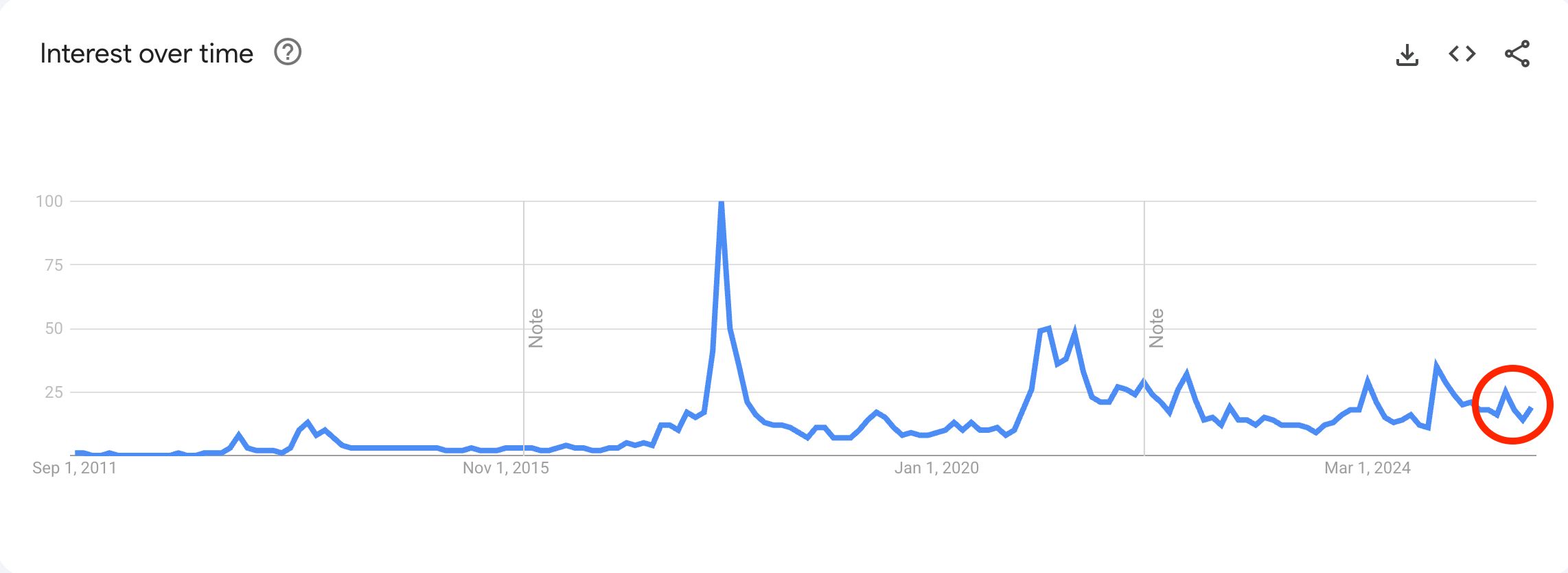 Despite new highs, #Bitcoin’s search interest is still near multi-year lows.