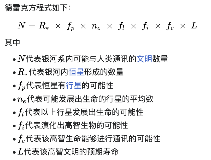 也有人把找到合适的人,比做寻找外星人的德雷克方程式。这个方程式很容易移植到找对象的问题上,首先你是女的,而且是异性恋。那么全球有一半的人不适合你。然后假设你要求对方会说英语或者汉语,那么又只剩下来7-8亿。你可以一步步细化要求,然后算出来在一个城市适合你的人,大概率也有个几千上万个。