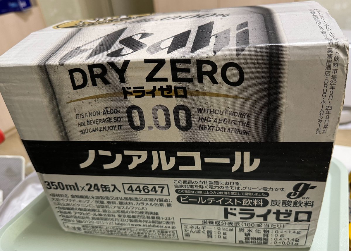 新买的Asahi Dry Zero一箱到了,之前喝的Bavaria刚好块喝完了。我戒酒很多年了,偶尔跟朋友也喝一两次真的酒精酒。不过自己在家,绝对只喝无醇啤酒。不过Asahi Dry Zero之类的在国内的饭馆还没普及率。所以,在外面,基本上不喝。