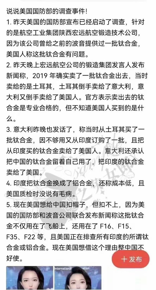这种故事也疯传传播,首先钛合金和铝合金难分辨么?另外,战斗机的话,用错的,可能飞一次就炸了,你以为战斗机用材料是随便用的么?错一点都可能会灾难性后果……过得了试飞么? https://t.co/erVNXHCA1k