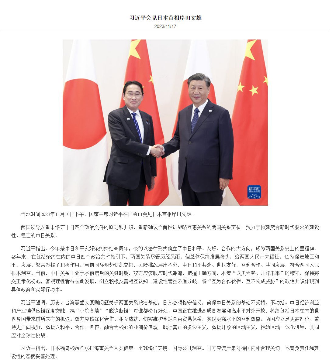 【反日小粉红们要扑街了】 11月17日,习近平与日本首相岸田文雄见面,表示中日和平共处,世代友好符合两国人民根本利益。