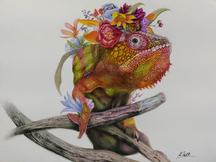 #色鉛筆画 #色鉛筆イラスト #カメレオン #イラスト #art #illustration