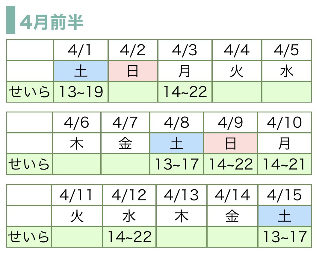 今日の12時よりお電話にて4月前半のご予約開始です!よろしくお願いします