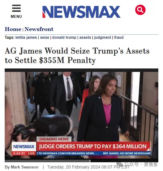 《左疯纽约州总检察长威胁:将没收川普总统的资产支付$3.55亿罚金》