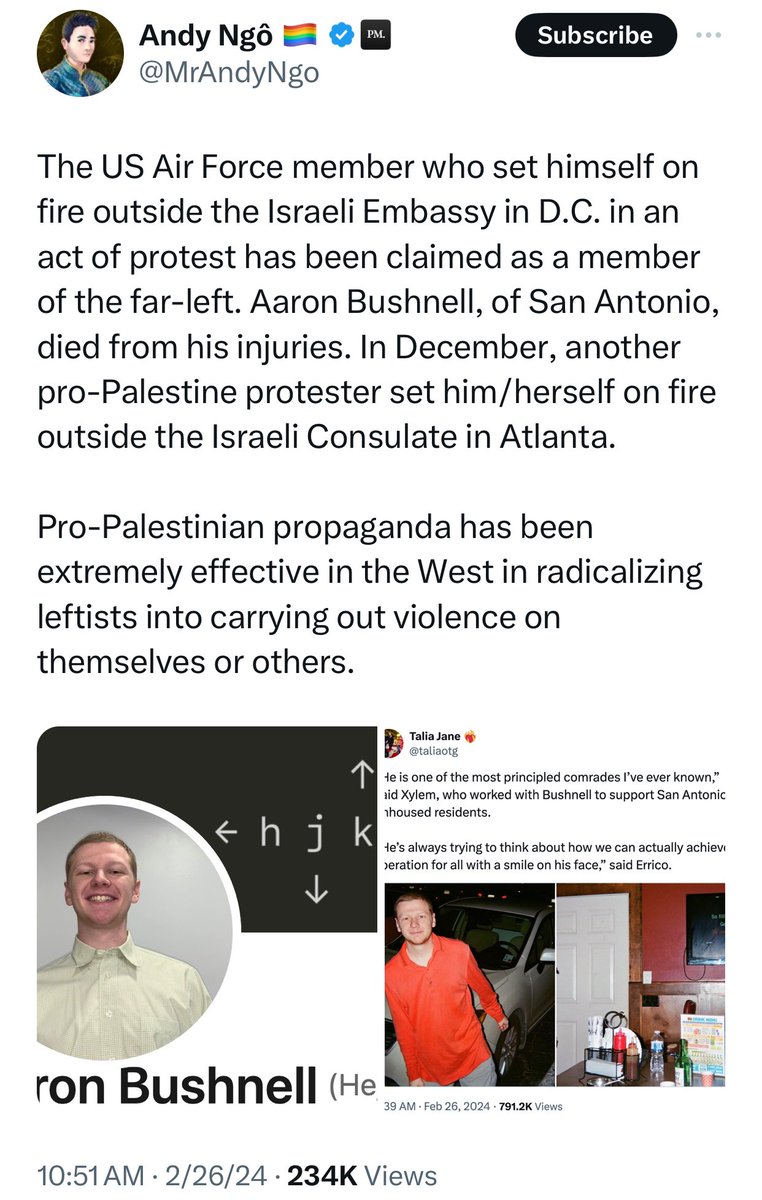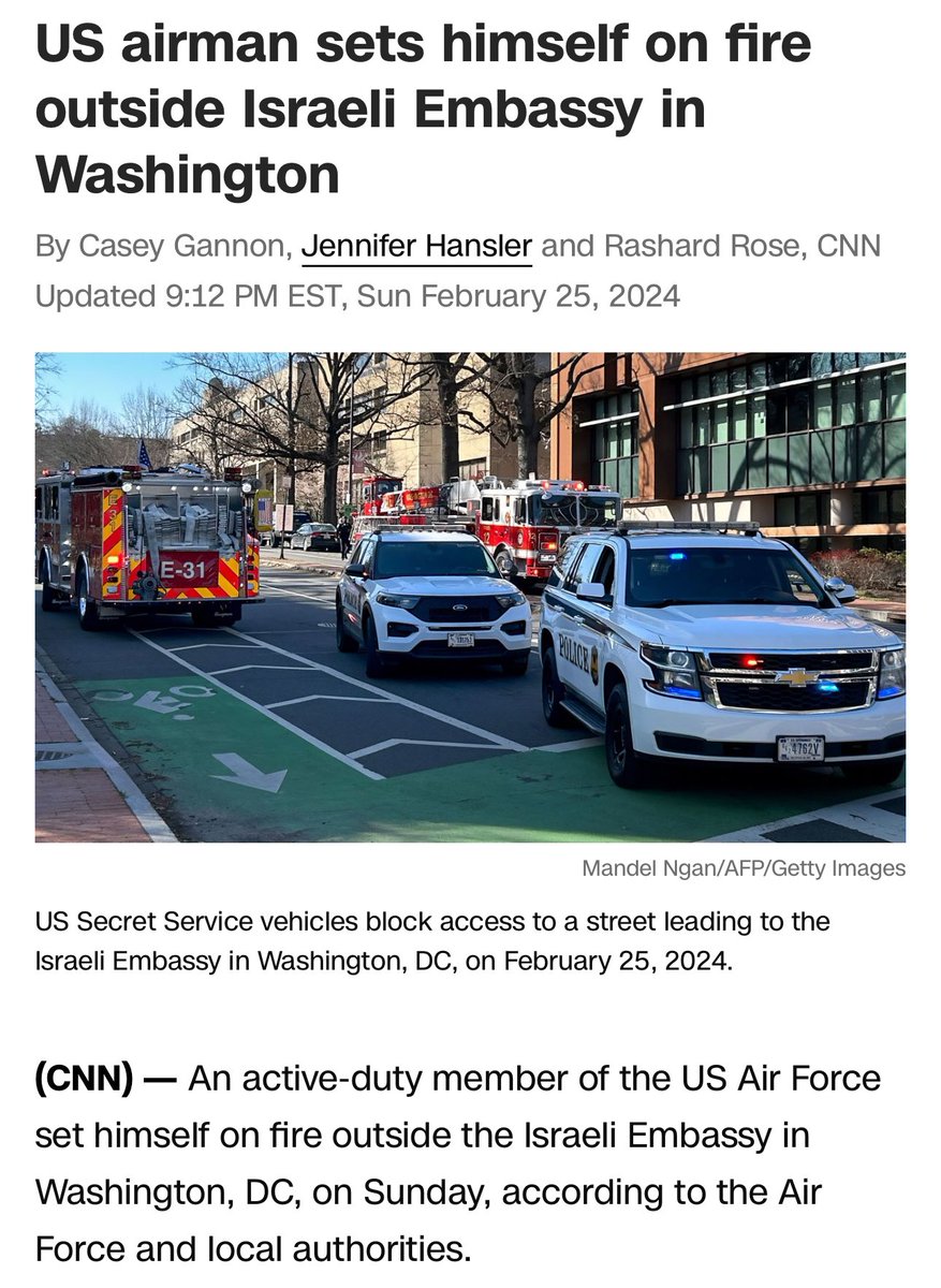 25岁的亚伦.布什内尔(Aaron Bushnell)是美国空军现役军人,今天在以色列驻华盛顿大使馆前自焚。