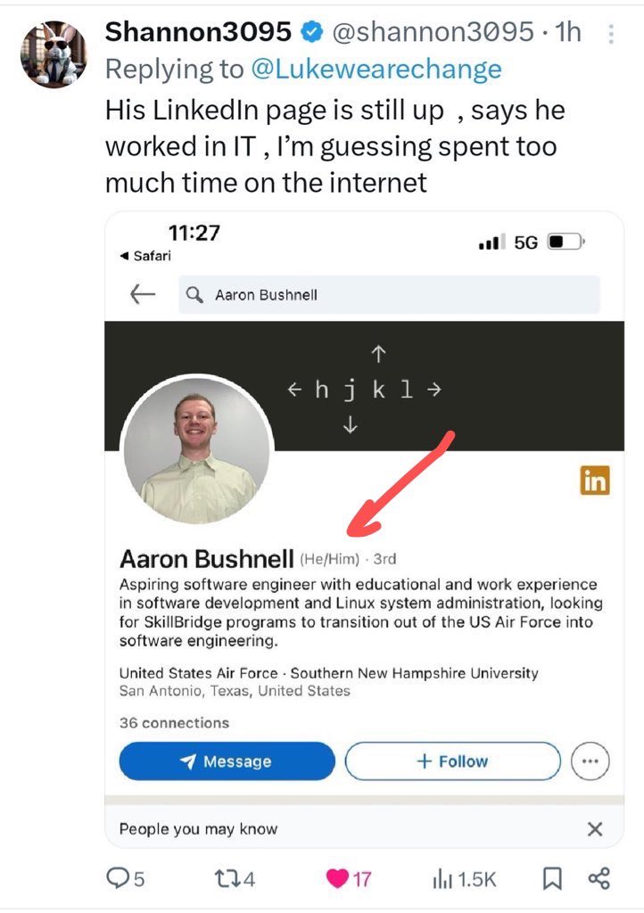 昨晚我发了亚伦的X帖后,有人想更多了解他的背景。从他的领英封面上可以看到他的介绍。他的pronouns个性签名代名词(He/Him)表示“对于可能被认为是男性的人”,表达对同性、变性的支持。