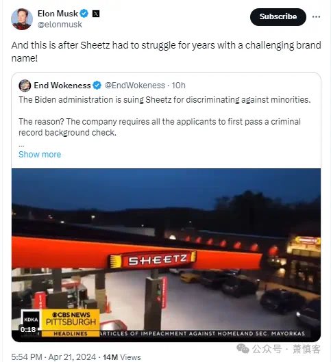 马斯克跟帖:此前,Sheetz 已经为打造一个具有挑战性的名品牌奋斗了多年!