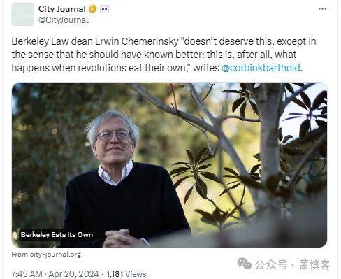 伯克利法学院院长切梅林斯基"不应该受到这样的待遇,只不过他应该更清楚:这毕竟是革命自食其果的结果"。