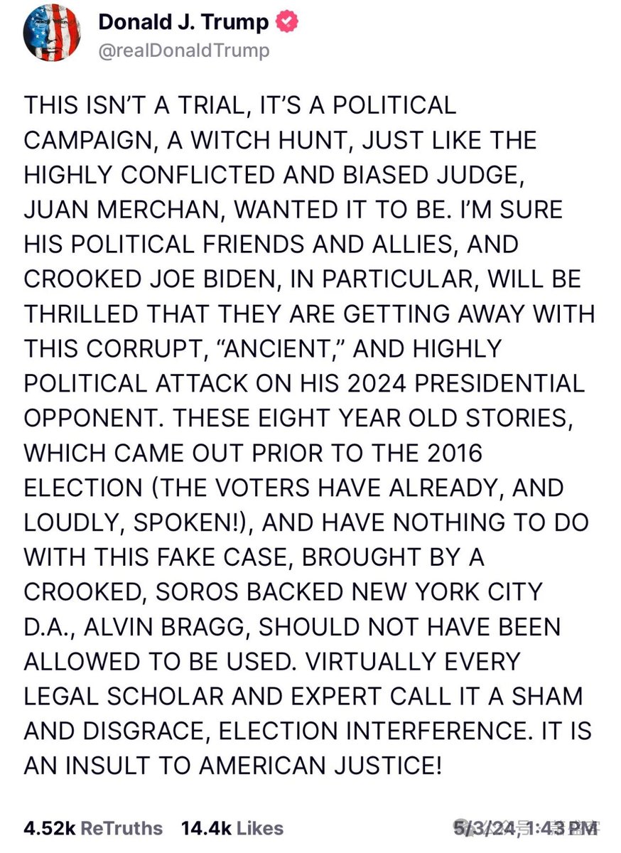 这种法庭没有任何正义可言,这是明目张胆的对选举前所未有的疯狂干预。在民主党的操纵下,美国败坏的司法系统对川普总统的政治迫害已经和极权国家没有区别了,令人发指!