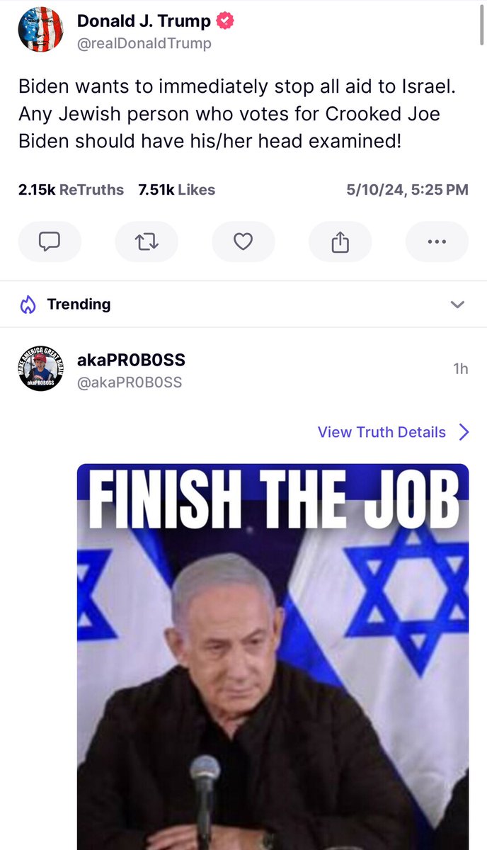 川普的TS文:拜登希望立即停止对以色列的所有援助。任何投票给歪嘴拜登的犹太人都应该检查一下自己的脑袋! https://t.co/8kqS5KNGjX