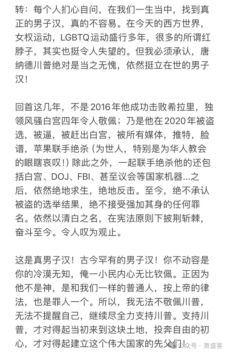 他发的X文:我越来越担心我们国家的大方向、我们破碎的移民系统、不断膨胀的赤字和外交政策失误等问题。 因此,在即将到来的选举中,我将支持前总统川普。
