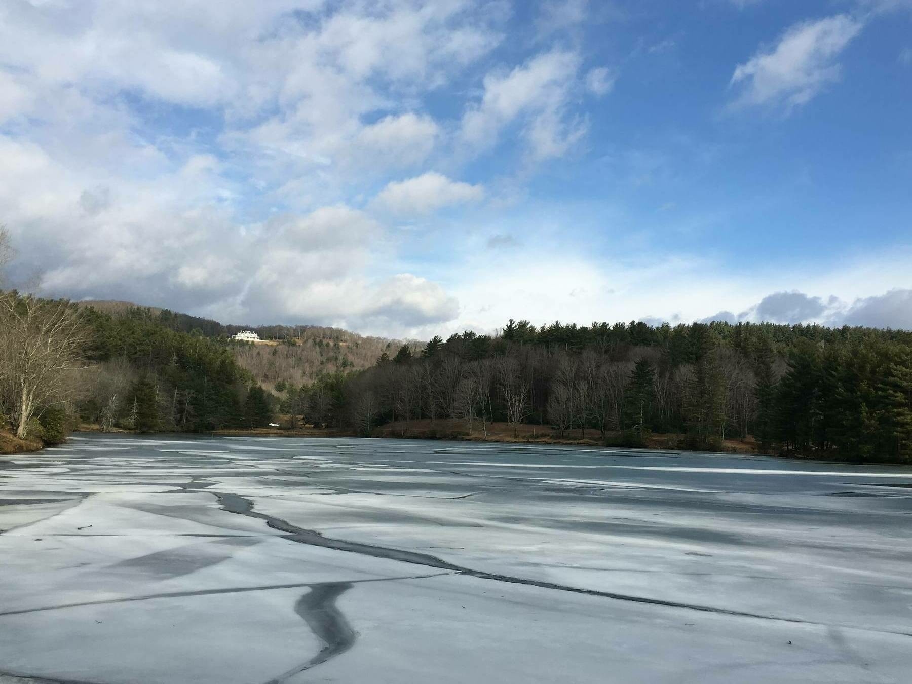 Located right off the Blue Ridge Parkway near Blowing Rock, NC, Cone Manor, the former home of one of NC’s textile barons, overlooks the frozen surface of Bass Lake down below. - https://amerpie.lol/2025/02/05/located-right-off-the-blue.html - #Photography