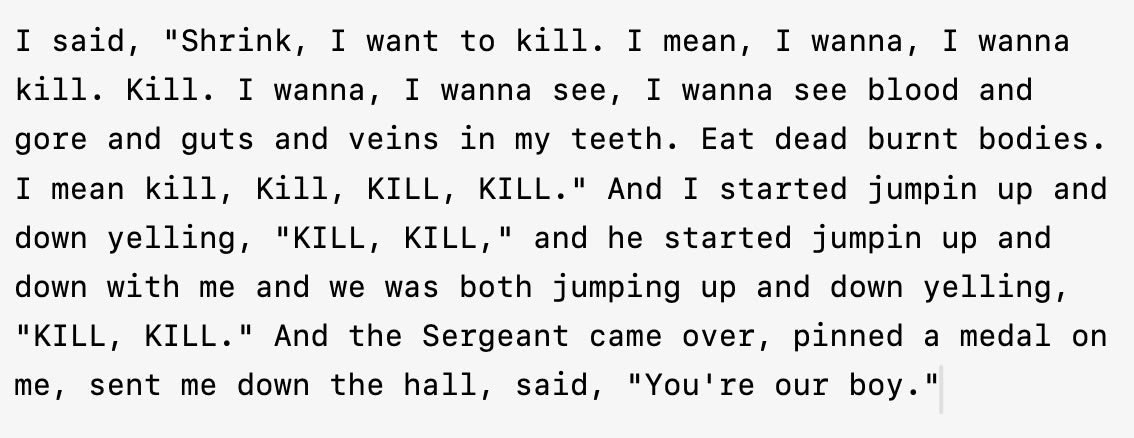 Arlo Guthrie describing the day of his draft physical from the classic tune "Alice's Restaurant."