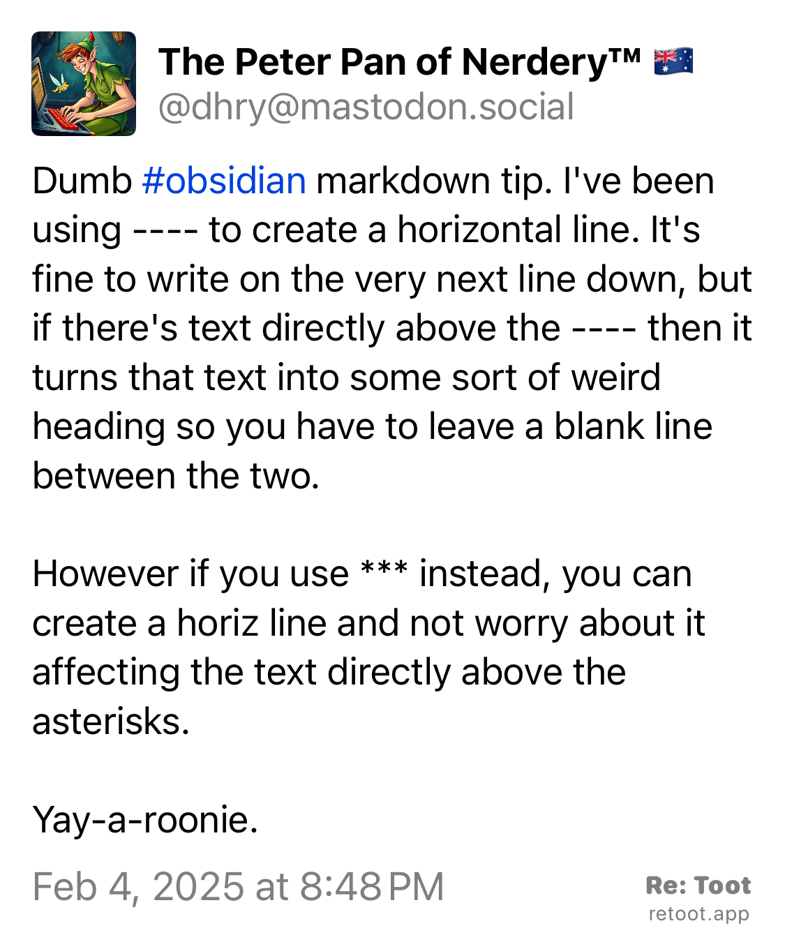 https://mastodon.social/@dhry https://social.lol/tags/Obsidian https://social.lol/tags/ObsidianMD https://social.lol/tags/PKM
