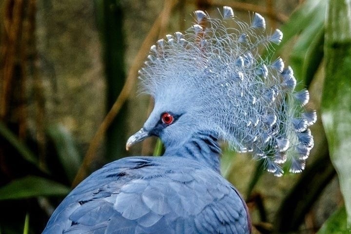 Another photo from the now closed North Carolina Aviary - A Victoria Crowned Pigeon with its vibrant blue plumage, deep red eyes, and a dramatic crest of lacy, white-tipped feathers #bird - https://amerpie.lol/2025/02/08/another-photo-from-the-now.html - #Photography
