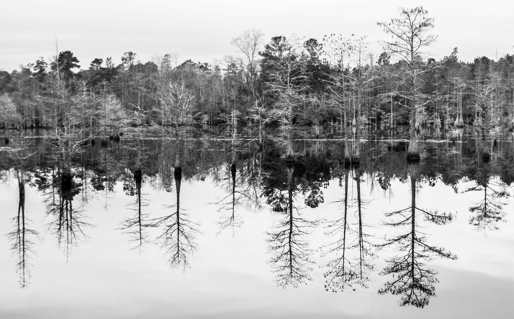 A farm pond in Gray’s Creek, NC in winter. The next year, swollen by rains from Hurricane Matthew, the dam burst. It has never been rebuilt. - https://amerpie.lol/2025/02/16/a-farm-pond-in-grays.html - #Photography