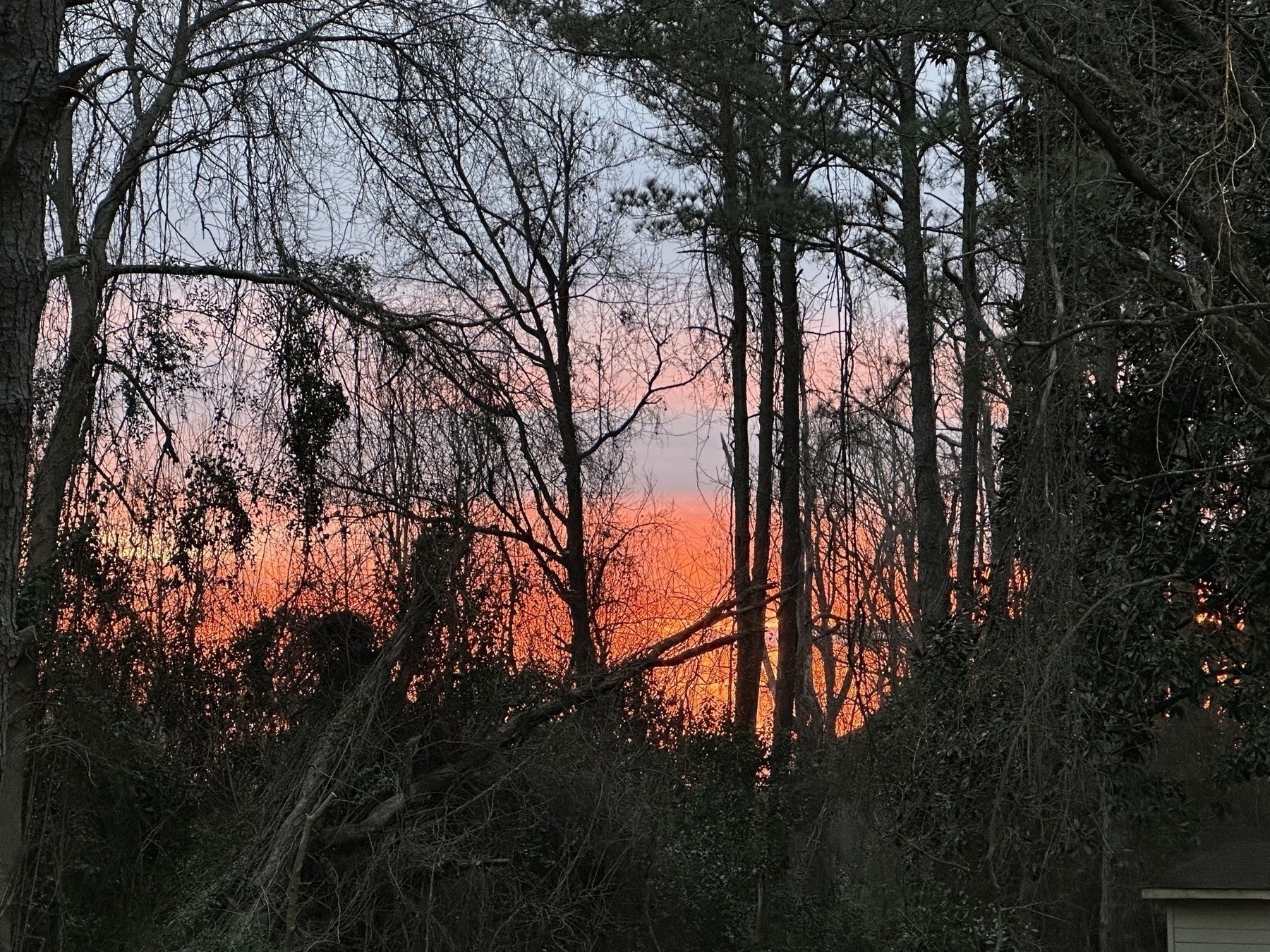 I set up my new home office, so this is the view I get at dawn while drinking my coffee. - https://amerpie.lol/2025/02/19/backyard-at-dawn.html - #Photography