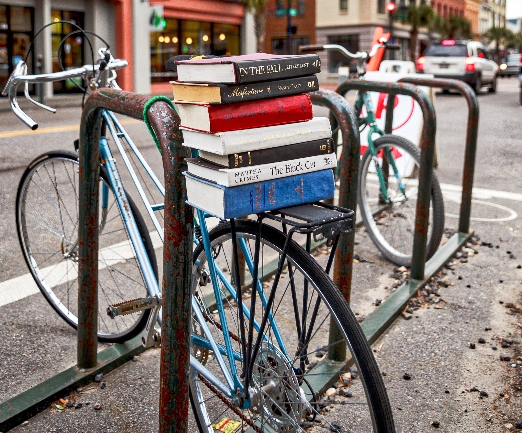 Two of the great joys of my life, books and bicycles. - https://amerpie.lol/2025/02/21/the-streets-of-charleston.html - #Photography
