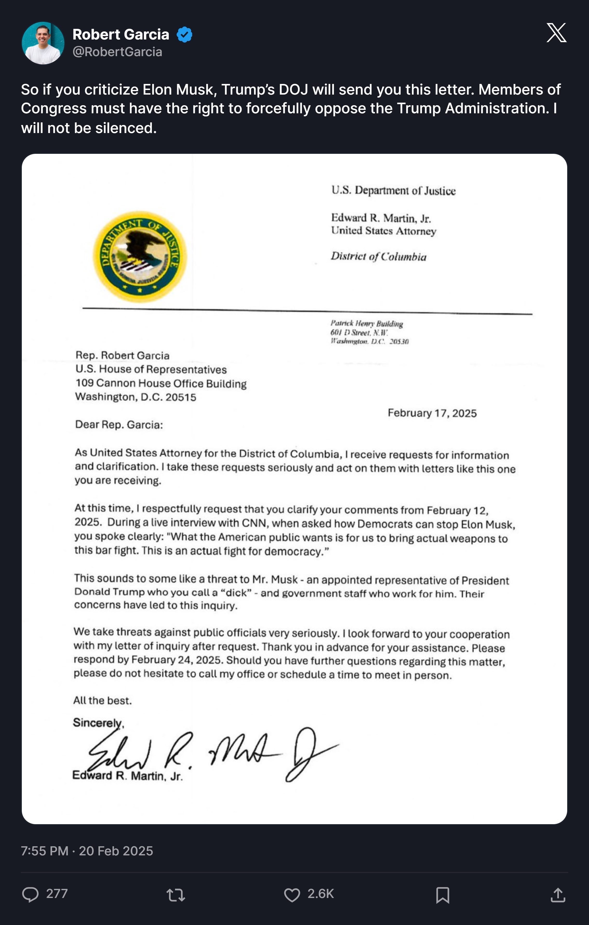 There are literal Nazis marching on American streets, and Trump's Dept. of Justice is sending threatening letters to a member of congress who called the supreme leader a dick. I hate this timeline.