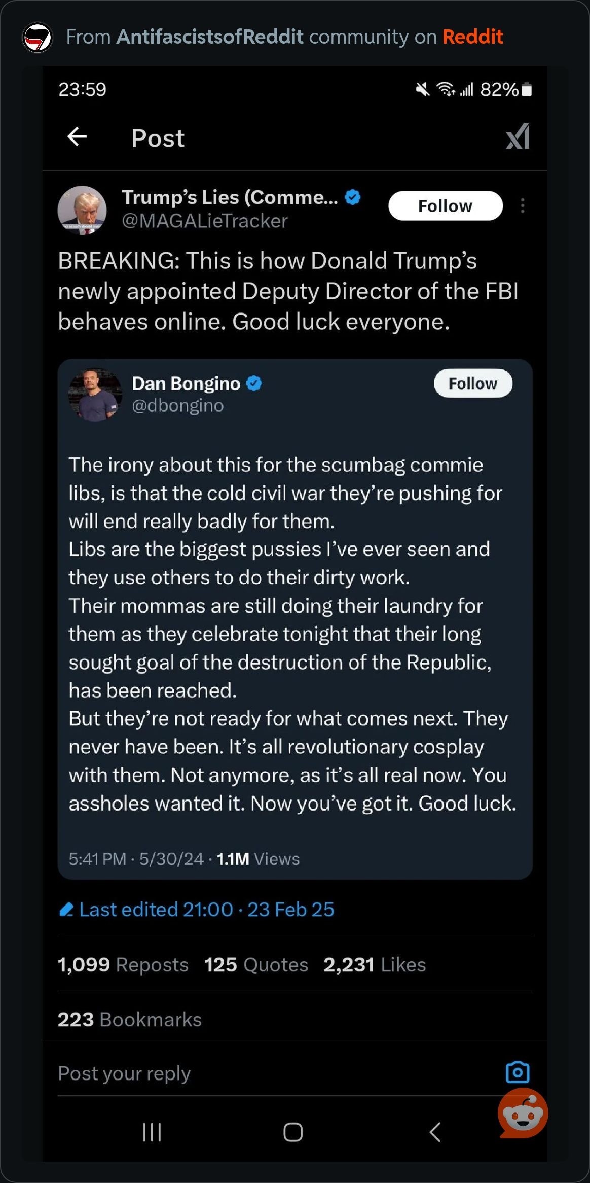 Are y'all ready for the new deputy director of the FBI? He's banned from YouTube for spreading misinformation and was Ashley Babbit's hero. What a country, eh?