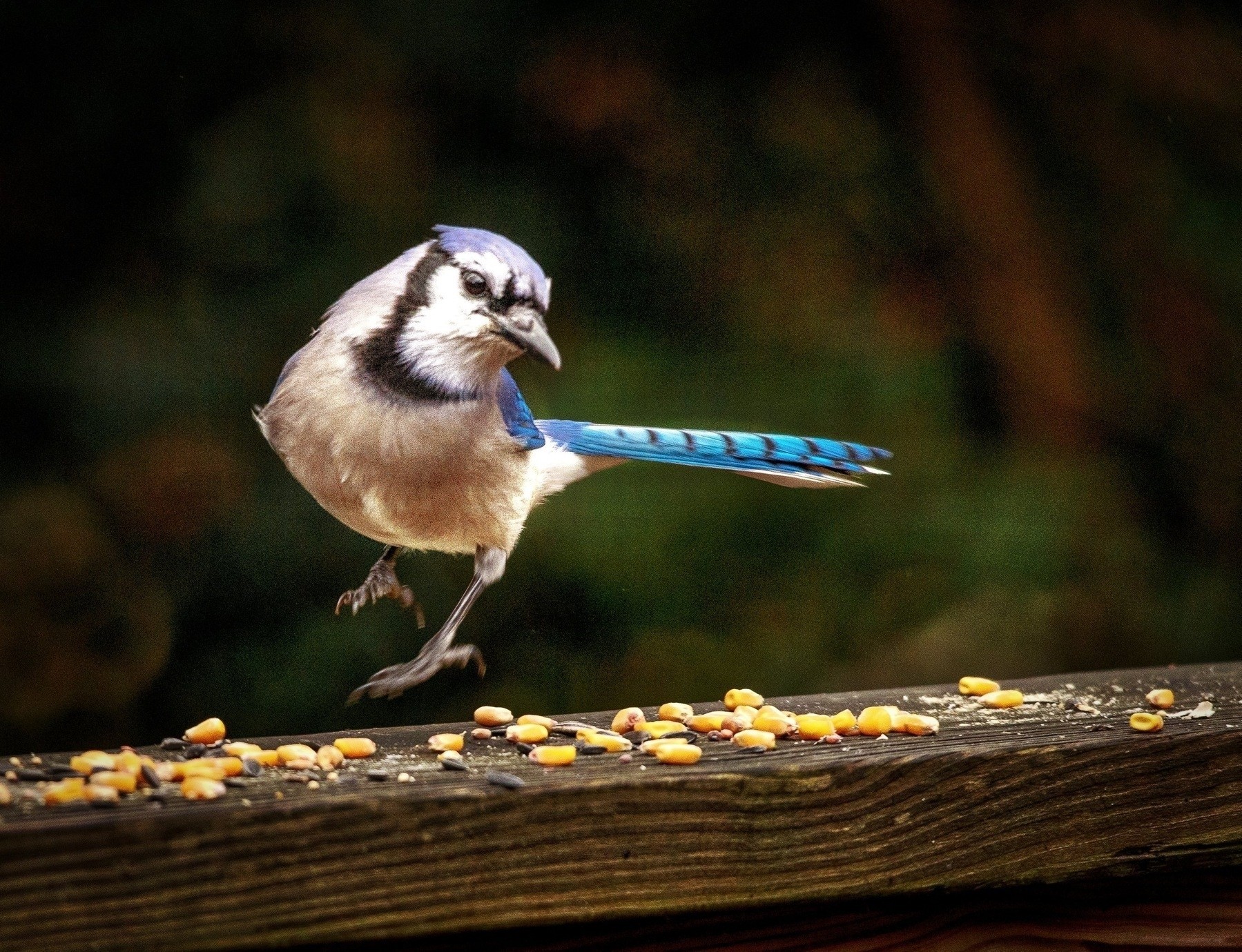 I love the way he seems to be levitating. This blue jay and I formed quite a relationship on my deck over the winter, reinforced by his love for peanuts. #birds - https://amerpie.lol/2025/02/26/the-levitating-jay.html - #Photography