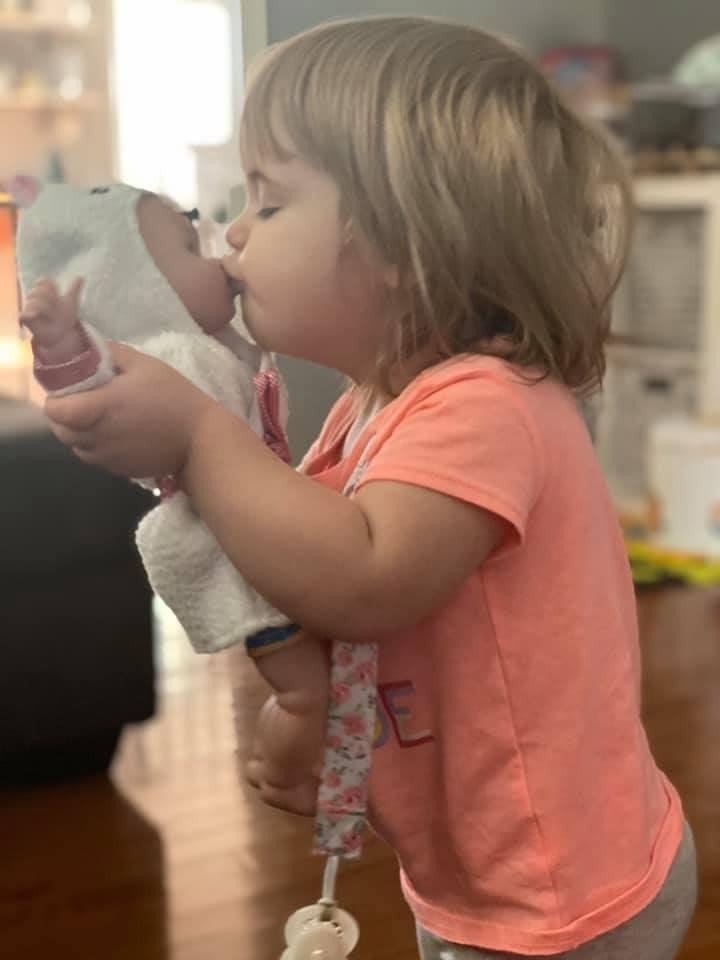 Want to see something precious? Our youngest granddaughter kissing her baby doll and melting my heart.