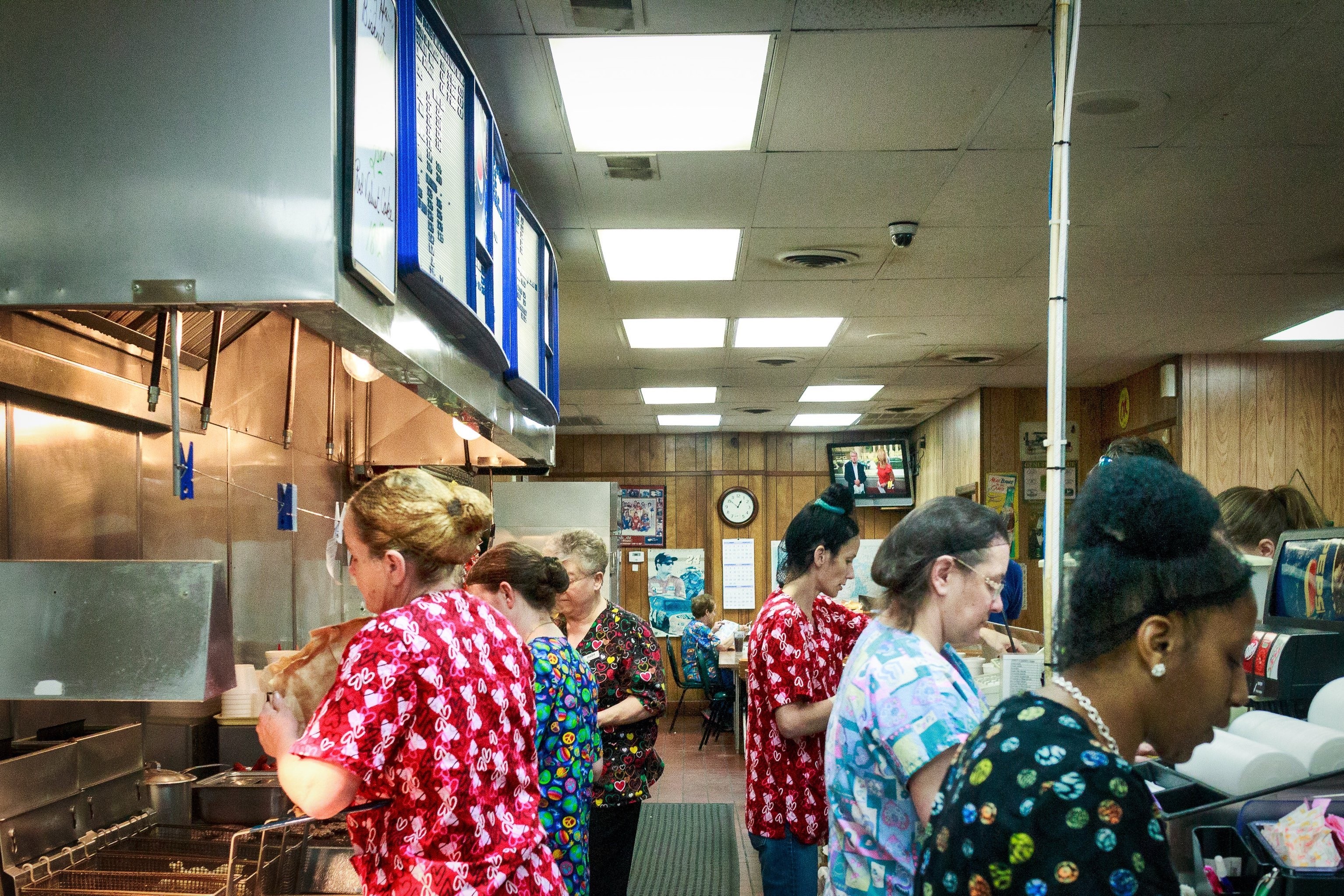 If you ever find yourself in Dunn, NC at lunchtime, swing by Sherrie's Bakery for lunch and let these efficient ladies make you a hamburger, Carolina Style (mustard, slaw, onions, chili).