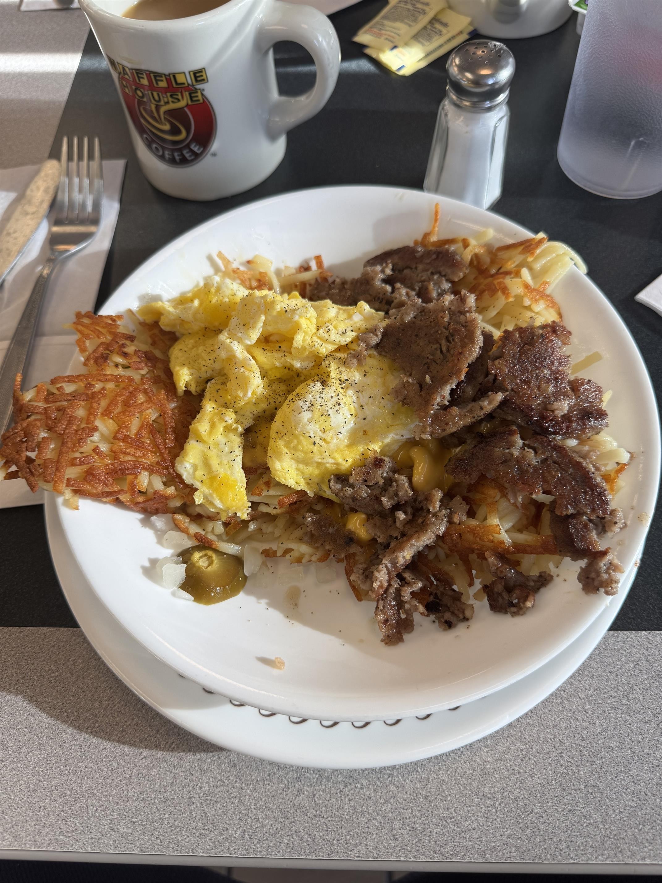 One of the best things about living in the US is a Waffle House breakfast.