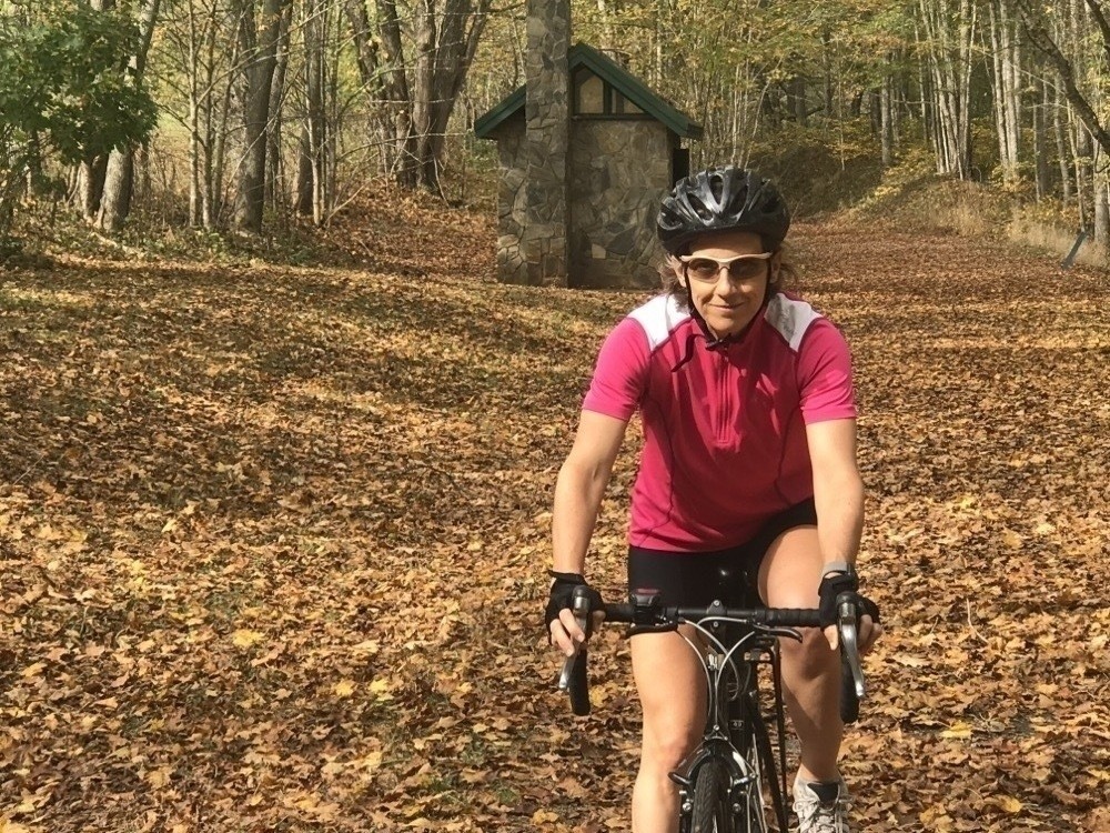Wonder Woman enjoying a ride beside the New River in a linear state park in SW Virginia. - https://amerpie.lol/2025/04/07/riding-the-new-river-trail.html - #Photography #the100pics Follow me on Pixelfed @amerpie@pxlmo.com