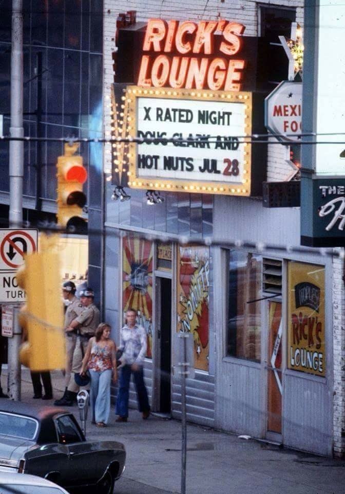 A bit of Americana - this is a vintage shot of Hay Street, the old red-light district of Fayetteville, NC, affectionately known as Fayettenam. Adjacent to Ft. Bragg, home of the 82nd Airborne, you can see two MPs in the shot. The city began cleaning up the area in the 80s.